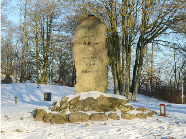 Gennem årene blev der rejst mindesmærker for de toneangivende personer, som havde været med til at give os grundloven. En anden dag må I lave et arrangement på Himmelbjerget, så vil jeg gerne komme forbi og fortælle om, hvem de var.